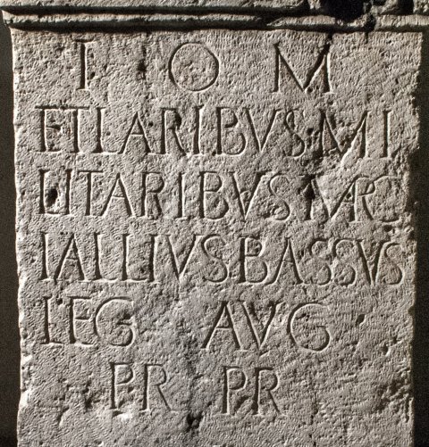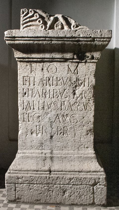 - I(ovi) O(ptimo) M(aximo) / et Laribus mi/litaribus Marc(us) / Iallius Bassus / leg(atus) Aug(usti) / pr(o) pr(aetore)