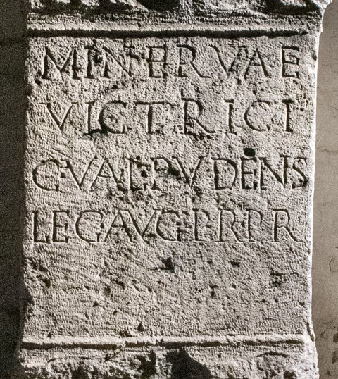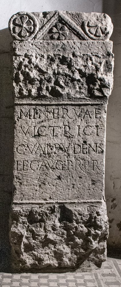 - Minervae / victrici / C(aius) Val(erius) Pudens / leg(atus) Aug(usti) pr(o) pr(aetore)
