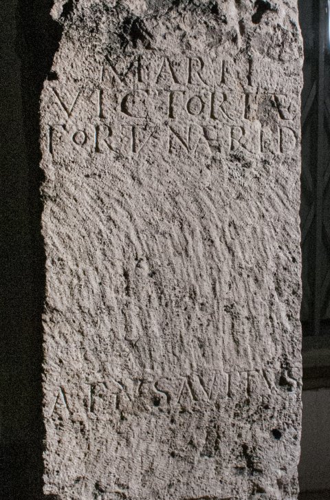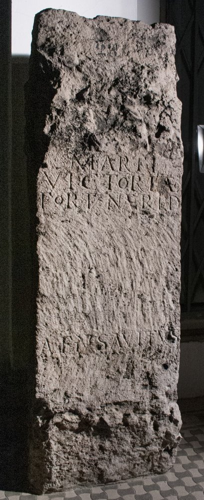 - Marti / Victoriae / Fortunae Red(uci) / [[pro s[al(ute)] Imp(eratoris)]] / [[Caesar(is) [M(arci) Iul(ii)]]] / [[P[hilippi Aug(usti)]]] / [[et M(arci) Iul(ii) Philippi]] / [[nobi[lissim]]]/[[i Caesa[ris]]] / A[l]fius Avitus / [[leg(atus) Aug(usti) pr(o) pr(aetore)]] / [[Philippo Aug(usto) II]] / [[et Philippo co(n)s(ulibus)]]