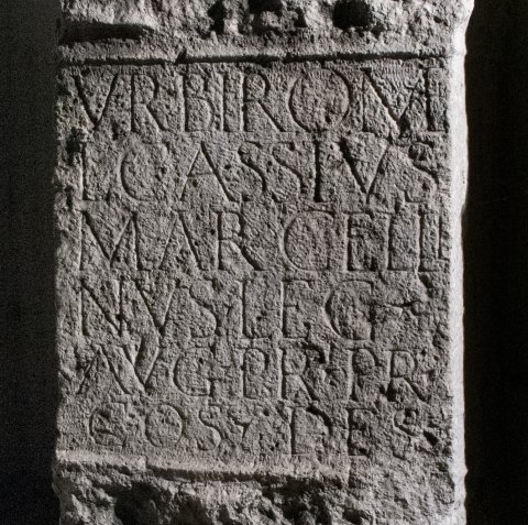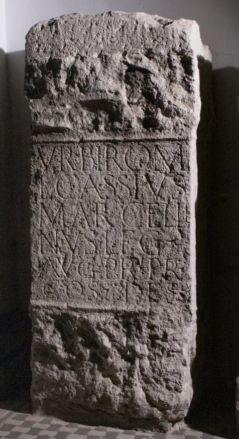 - Urbi Rom(a)e / L(ucius) Cassius / Marcelli/nus leg(atus) / Aug(usti) pr(o) pr(aetore) / co(n)s(ul) des(ignatus)