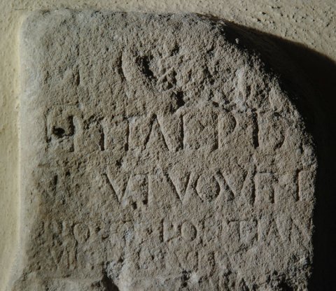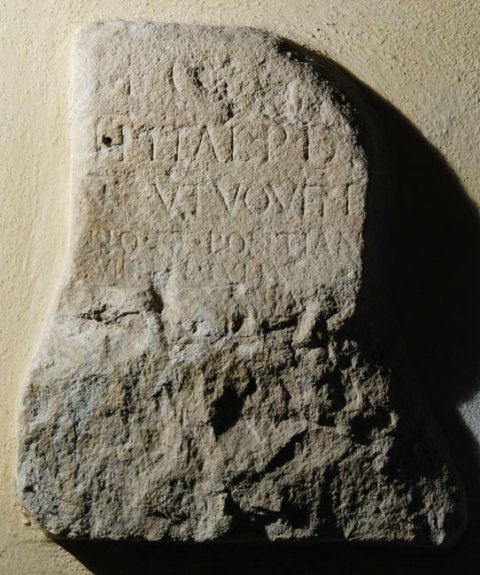 - ---] / b(ene)f(iciarius) co(n)s(ularis) leg(ionis) / II Ital(icae) p(iae) f(idelis) Aug(usti) / n(ostri) ut vovit ded(icavit) / Pio et Pontiano co(n)s(ulibus) / VIIII Kal(endas) Iulias