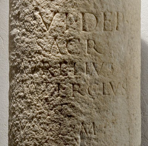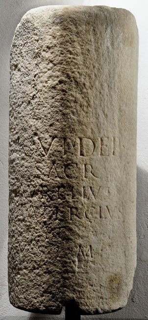 - Iovi Dep(ulsori) / sacr(um) / Aurelius / Paterc(u)lus / b(ene)f(iciarius) / v(otum) s(olvit) l(ibens) m(erito)