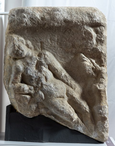 Auf der Außenseite Mythos (Endymion): schlafender nackter Jüngling. Links schloss das Relief mit Selene (Nr. 509) an ?