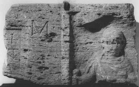 5227 Relieffragment mit Soldat und Rest einer Grabinschrift