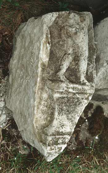 - Genius (Erot): auf hohem Postament nackte kindliche Figur in Schrittstellung, Rückenansicht. Nur Unterkörper vorhanden.