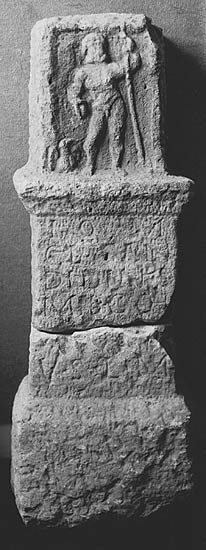 - I(ovi) o(ptimo) m(aximo) / Cla(udius Can/didianus mil(es) coh(ortis) / (milliariae ?) M[aur(orum) ] / v(otum) s(olvit) l(ibens) m(erito)