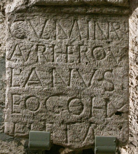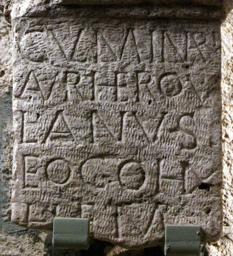 - [I(ovi) O(ptimo)] M(aximo) / Culminari / Aur(elius) Her<c=O>u/lanus / eq(ues) coh(ortis) |(miliariae) / Hem(esenorum) / [---