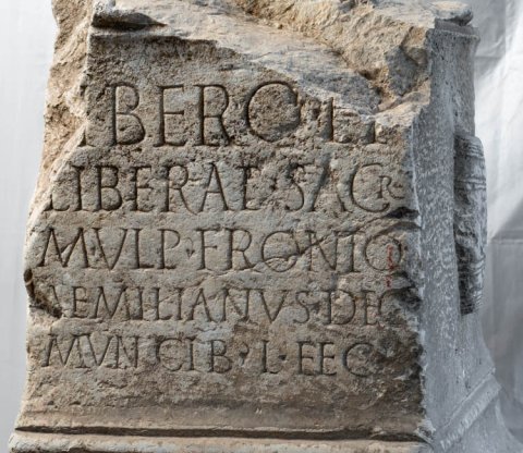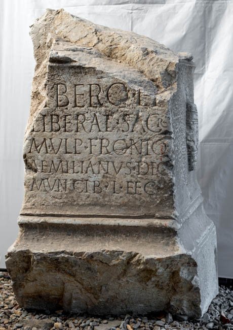 - Libero et / Liberae sacr(um) / M(arcus) Ulp(ius) Fronto / Aemilianus dec(urio) / mun(icipii) Cib(alis) l(ibens) f(ecit)