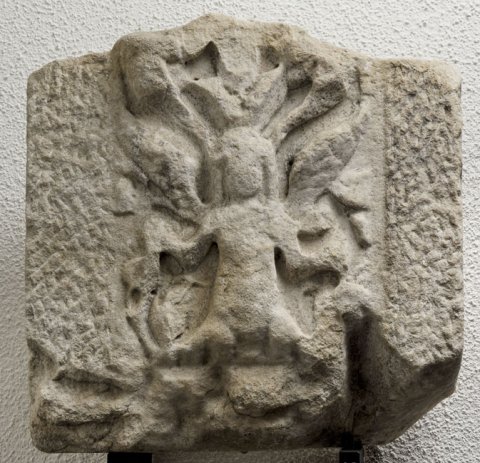 - unten u. oben abgebr., seitl. Rahmen abgearbeitet, Relief verwaschen