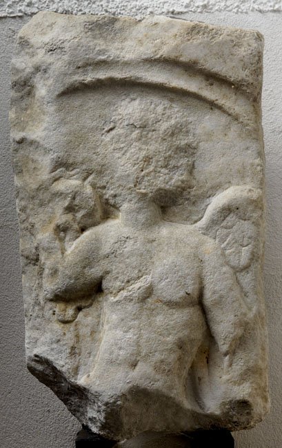- Genius (Erot): unter Bogen stehender nackter geflügelter Knabe, rechter Arm erhoben.