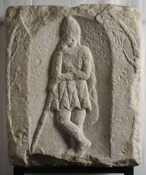 - Mythische Figur : in von Bäumen flankierter Bogennische stehender Attis, rechter Arm auf Pedum gestützt, in Mantel und phrygischer Mütze. Am Fuß des linken Baumes kleine Tiere.
