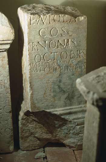 - ---] / [Gordiano] / [Aug(usto)] / et Aviola / co(n)s(ulibus) / pr(idie) nonas / octobres / Val(erius) Vitalinus / Val(erius) Crispinianus