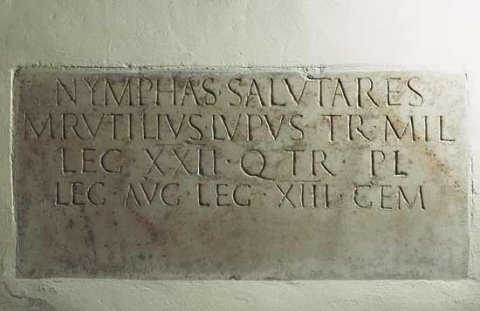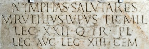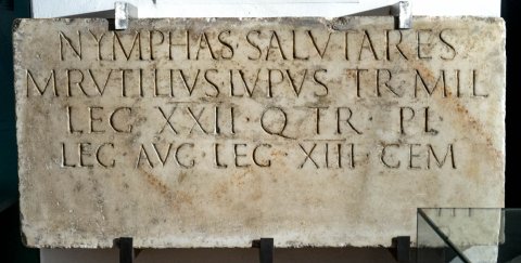 - Nymphas salutares / M(arcus) Rutilius Lupus tr(ibunus) mil(itum) / leg(ionis) XXII q(uaestor) tr(ibunus) pl(ebis) / leg(atus) Aug(usti) leg(ionis) XIII Gem(inae)
