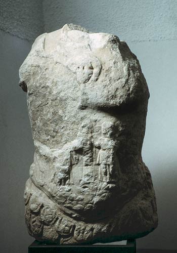 - nur Torso erh., stark verwittert, Oberfläche tlw. ab geschlagen