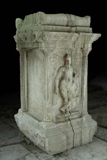 5389 Altar mit Seitenreliefs und abgearbeiteter Inschrift