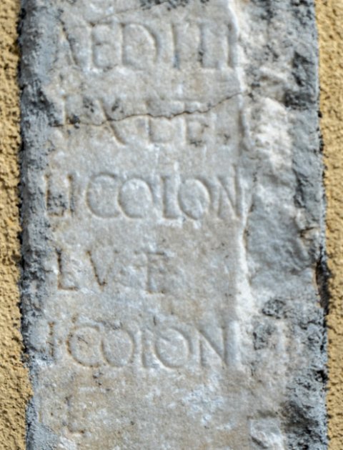 - [---]mio / [---] aedili / [--- a]n(norum) XL et / [--- aed]ili coloni(ae) / [--- an(norum)] LV et / [---]i colon(iae) / [--- a]n(norum) L / [--- H]onorata / [--- in mem]oriam / [---]ati mariti / [--- sepu]lc(h)rum / [--- pos]uit