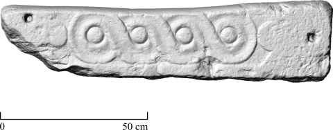 - Auf der Unterseite Soffitte mit Flechtband, anschließend geglättete Fläche mit Dübelloch.