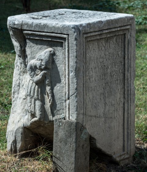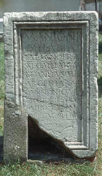 - M(arco) Antoni(o) / M(arci) f(ilio) Fabia / Fabiano proc(uratori) / XL Galliarum / et portus item / argentariar(um) / Pannonicar(um) / c(onductori) portori Illyrici / patrono bono / Mercator lib(ertus)