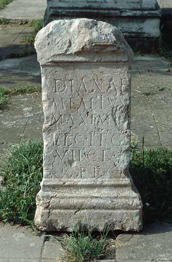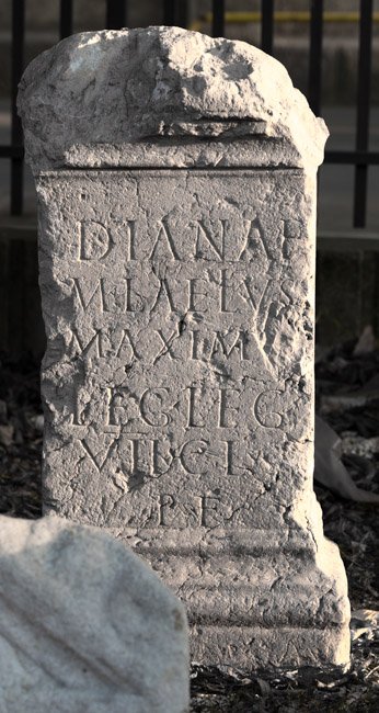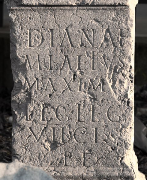 - Dianae / M(arcus) Laelius / Maxim[us] / leg(atus) leg(ionis) / VII Cl(audiae) / p(iae) f(idelis)