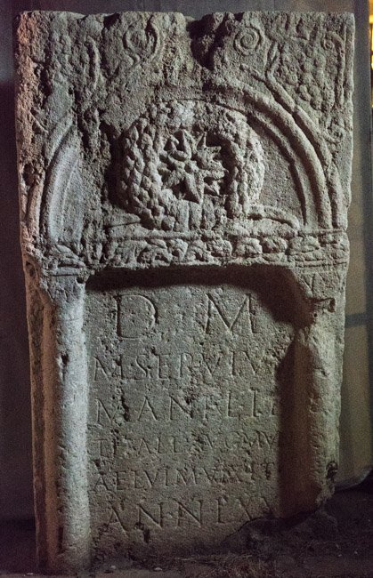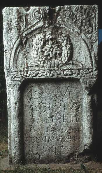 - D(is) M(anibus) / M(anius) Servius / Mani lib(ertus) / Thall(us?) Aug(ustalis) mun(icipii) / Ael(i) Vim(inaci) vixit / ann(os) LXX / [Manius Ser(vius)] / [S[i]lvanus fil(ius) et / heres b(ene) m(erenti) p(osuit)]