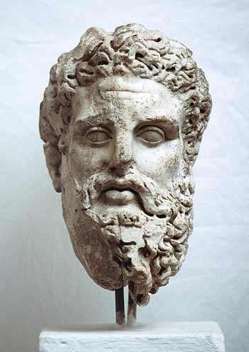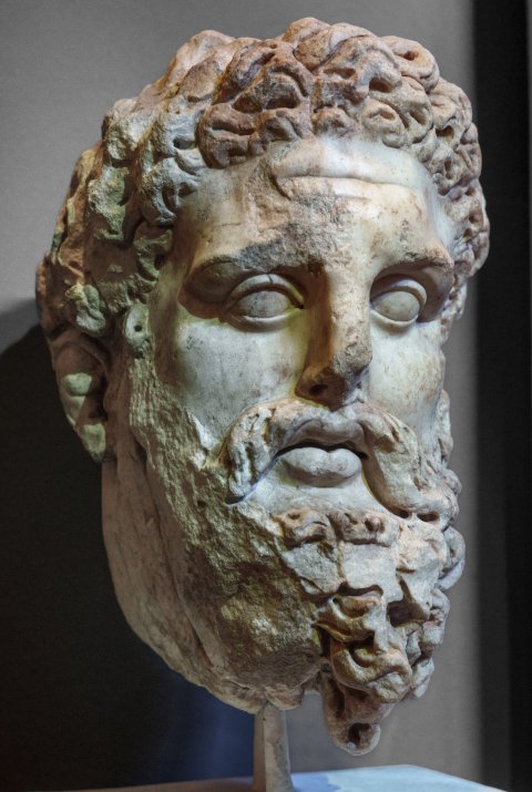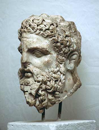 - Mythische Figur : Statue des auf seine Keule gelehnten bärtigen Herakles - Hercules