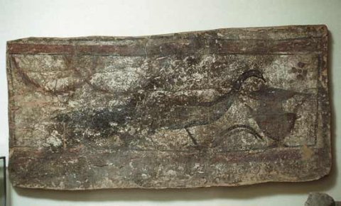 5505 Wand einer Grabkammer mit Pfau und Krater