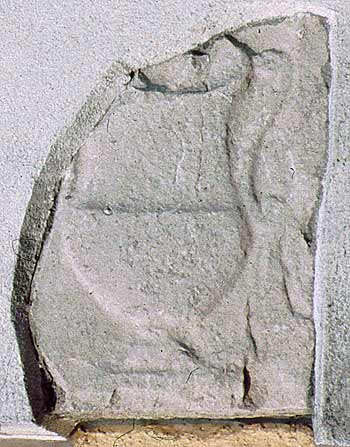 - an der Westfassade der Kirche hoch oben eingemauert