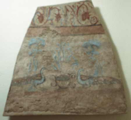 5511 Wand einer Grabkammer mit Krater zwischen Pfauen