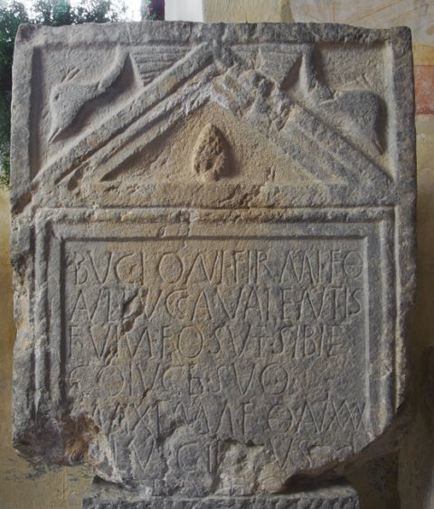 - Bucioni Firmi f(ilio) o(bito) / an(norum) L Bucca Valentis / f(ilia) viva posuit sibi et / co(n)iug<i=E> suo / Maxima f(ilia) o(bita) an(norum) XXX / [--]IV CII[--]VS / [ ---