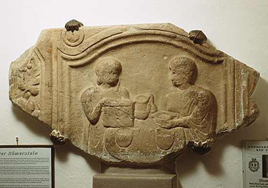 558 Relief mit Dienerin und Diener beim Totenopfer