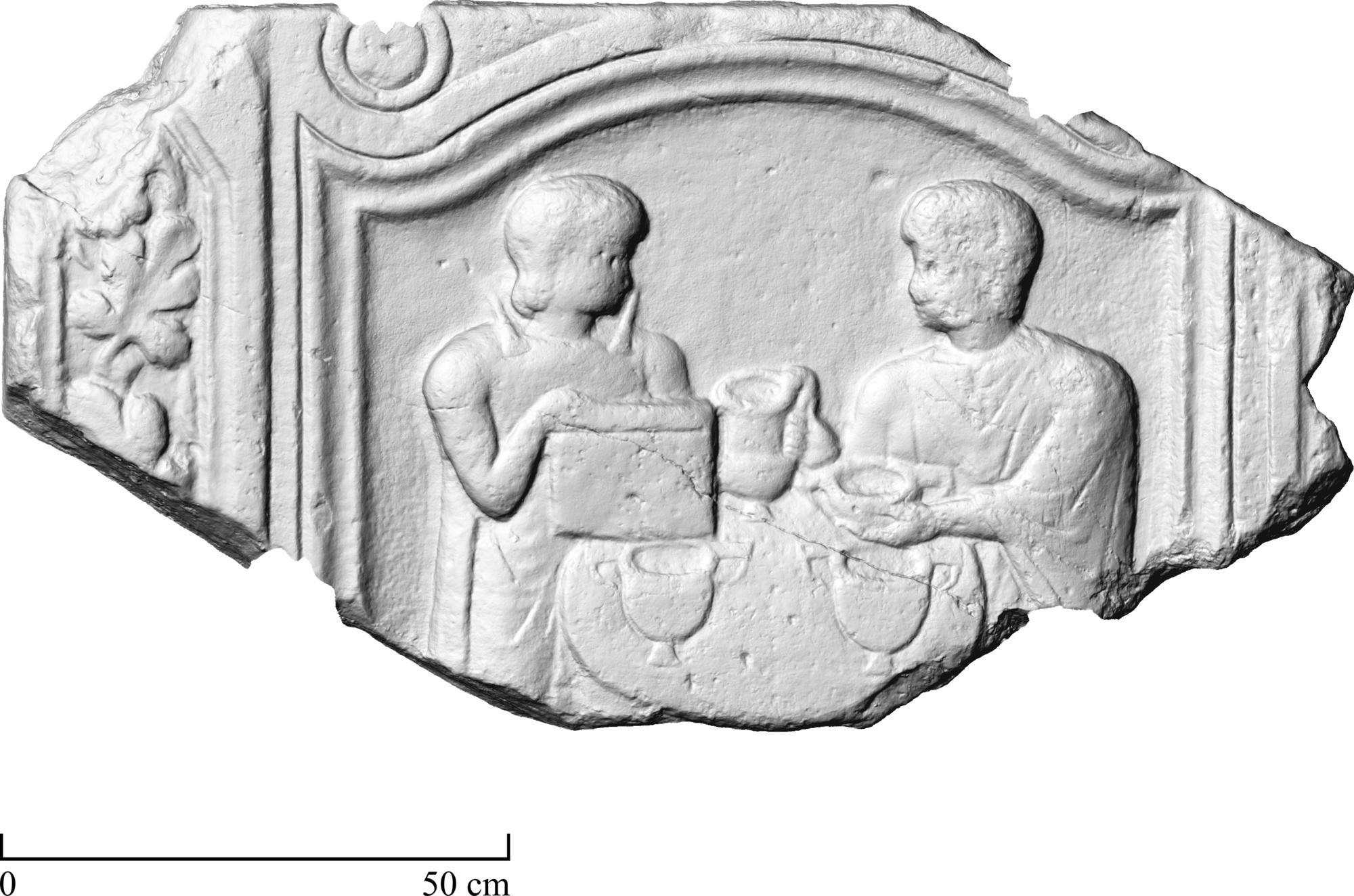 558 Relief mit Dienerin und Diener beim Totenopfer