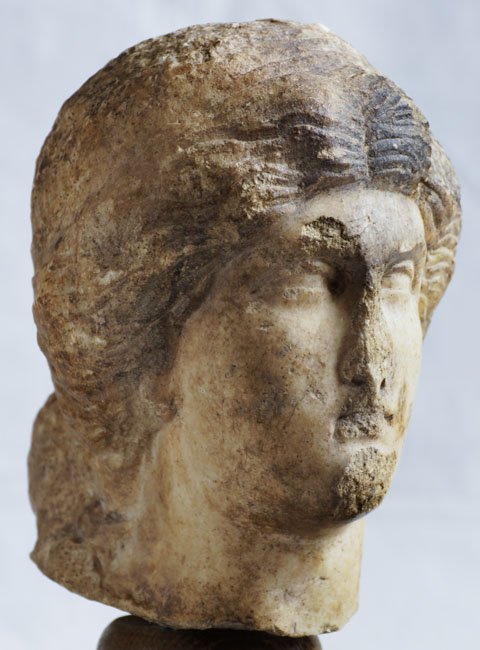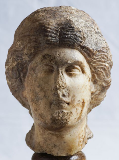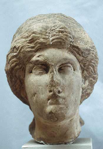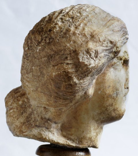 - Mythische Figur (Venus ?) : gewelltes Haar mit Mittelscheitel, im Nacken zusammengefasst, Schulterlocken.