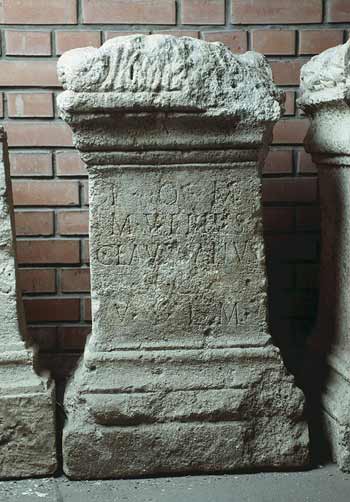 - I(ovi) o(ptimo) m(aximo) / M(arcus) Ulpius / Claudianus / b(ene)f(iciarius) co(n)s(ularis) / v(otum) s(olvit) l(ibens) m(erito)