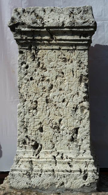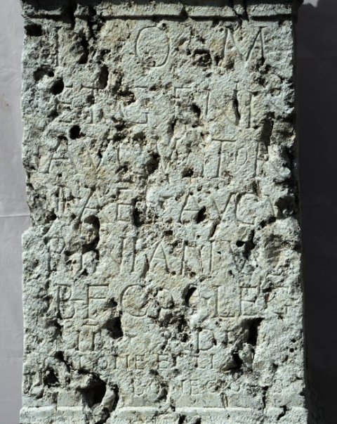 - I(ovi) o(ptimo) m(aximo) / et Geniis / Augustor(um) / P(ublius) Ael(ius) Augu/rinianus / b(ene)f(iciarius) co(n)s(ularis) leg(ionis) / II Adi(utricis) / Cilone et Li/bone co(n)s(ulibus)