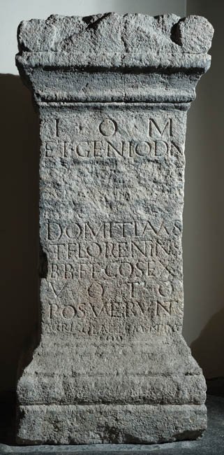 - I(ovi) O(ptimo) M(aximo) / et Genio d(omini) n(ostri) / [[[Imp(eratoris) Severi]]] / [[[Alexandri]]] / [[[Aug(usti)]]] / Domitianus / et Florentinus / bb(ene)ff(iciarii) co(n)s(ularis) ex / voto / posuerunt / Agricola Clementino / co(n)s(ulibus)