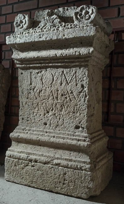 - I(ovi) O(ptimo) M(aximo) / Sex(tus) Calavi/us Maximus b(ene)f(iciarius) co(n)s(ularis) / leg(ionis) II Ad(iutricis) / v(otum) s(olvit) l(ibens) m(erito)