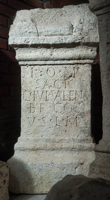 - I(ovi) o(ptimo) m(aximo) / sacr(um) / C(aius) Iul(ius) Valens / b(ene)f(iciarius) co(n)s(ularis) / v(otum) s(olvit) l(ibens) m(erito)