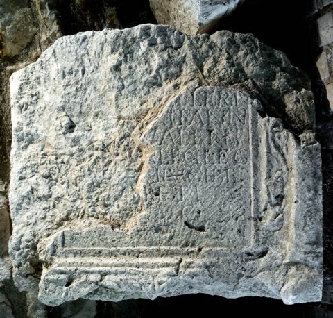 - 2 Bruchstücke, großer Teil der Inschrift abgesplittert und links abgebr.