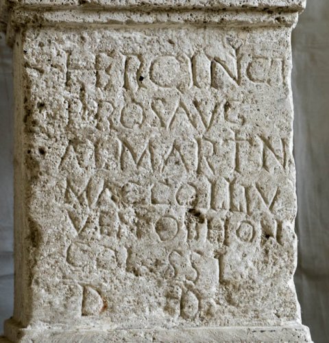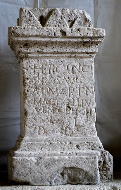 - Herc(uli) Invict(o) / pro s(alute) Aug(usti) / Ael(ius) Martin(us) / mag(ister) coll(egii) iu/vent(utis) ob hon(orem) / col(legii) s(upra)s(cript)i / d(at) d(edicat)