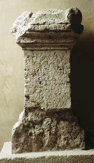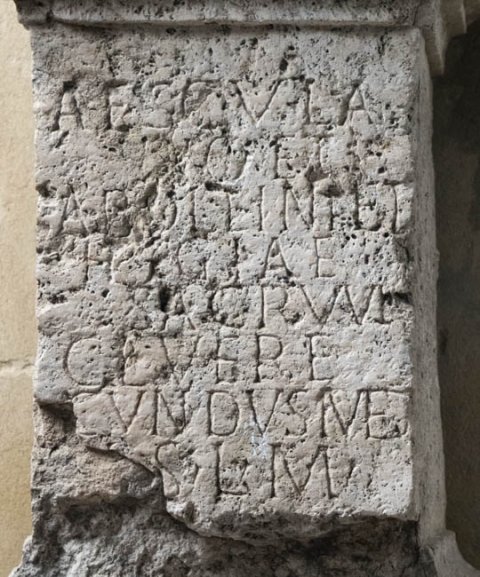 - Aescula/pio et / Apollini et / Hygiae / sacrum / Cl(audius) Vere/cundus med(icus)/ v(otum) s(olvit) l(ibens) m(erito)