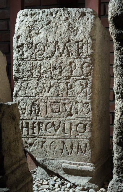 - I(ovi) O(ptimo) M(aximo) et / G(enio) h(uius) l(oci) pro / salute dd(ominorum) / nn(ostrorum) Iovio(rum) / et Herculio(rum) / Augg(ustorum) nn(ostrorum)