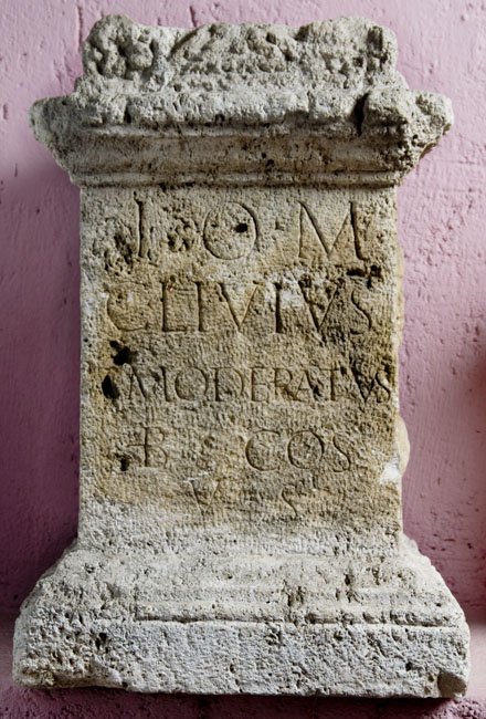 - I(ovi) o(ptimo) m(aximo) / C(aius) Livius / Moderatus / b(ene)f(iciarius) co(n)s(ularis) / v(otum) s(olvit)