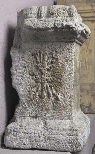 - verwittert, Rückseite und Teile der Nebenseiten abgeschlagen