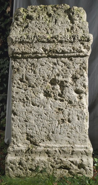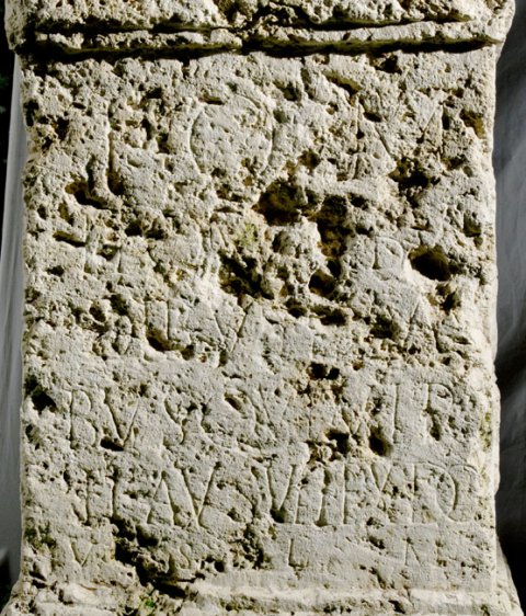 - I(ovi) o(ptimo) m(aximo) / et omnibus / dibus dea/busque Ulp(ius) / Fla(vi)us vet(eranus) ex dec(urione) / v(otum) s(olvit) l(ibens) m(erito)