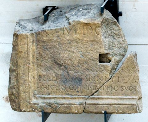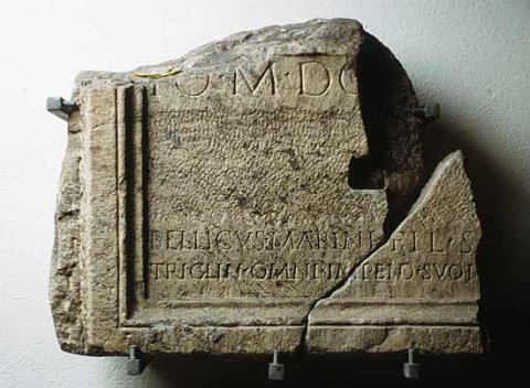 - Duobus Silanis I[I co(n)s(ulibus)] / I(ovi) O(ptimo) M(aximo) Dolic[heno pro salute] / [[ ----- ]] / [[ ----- ]] / [[ ----- ]] / [[ ----- ]] / Bellicus Marini fil(ius) s[acrar(ium) cum] / triclin(io) omni impend(io) suo iu[ssu dei f(ecit)]