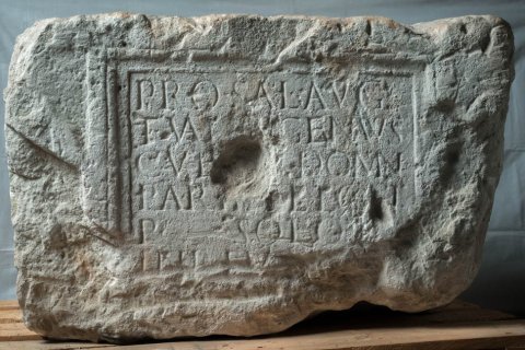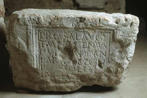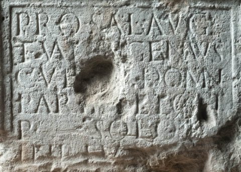 - Pro sal(ute) Aug(usti) / T(itus) Val(erius?) [I]ngenuus / cul[to]r domini / parie[t]e(m) lon(gum) / p(edes) [--- a] solo p(edes) [---] / inp(ensa) su[a fec(it)]