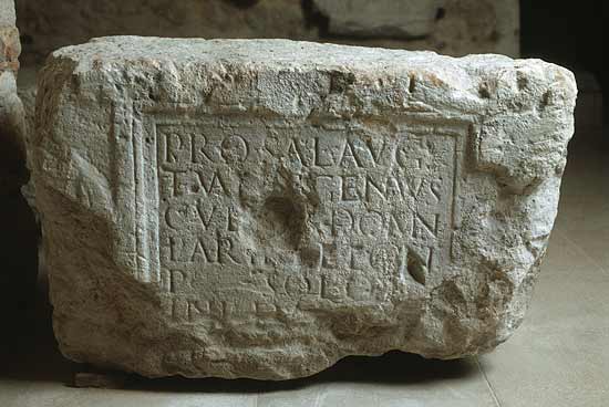 5783 Bauinschrift mit Votivrelief für Genius, Bacchus und Ariadne