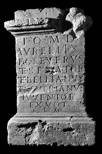 - I(ovi) o(ptimo) m(aximo) D(epulsori) / Aureliis / Fl(avii) Severus / et Senator / et Bellianus / et Severianus / iuvenior / ex vot(o) / s(olverunt) l(ibentes) m(erito)