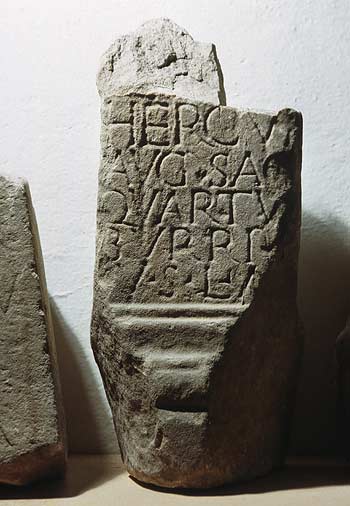 - Hercul[i] / Aug(usto) sac[r(um)] / Quartu[s] / Burri f(ilius) / v(otum) s(olvit) l(ibens) m(erito)