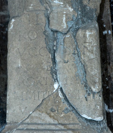 - Fragmente, beide Seiten und Teile des Schriftfeldes abgeschlagen